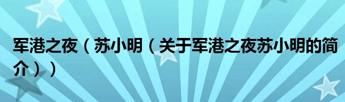 本文關于軍港之夜 蘇小明的簡介就講解完畢,希望對大家有所幫助。