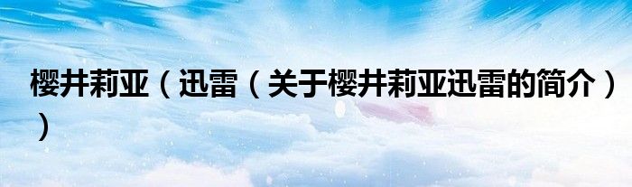 本文關于櫻井莉亞 迅雷的簡介就講解完畢,希望對大家有所幫助。