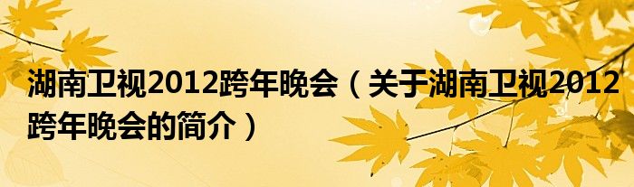 本文關(guān)于湖南衛(wèi)視2012跨年晚會的簡介就講解完畢,希望對大家有所幫助。