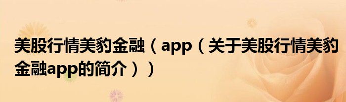 本文關于美股行情美豹金融 app的簡介就講解完畢,希望對大家有所幫助。