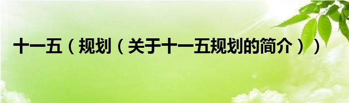 本文關于十一五 規劃的簡介就講解完畢,希望對大家有所幫助。