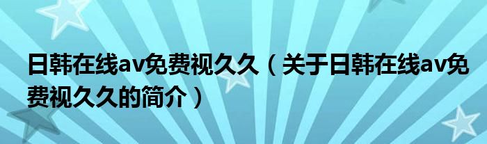 本文關于日韓在線av免費視久久的簡介就講解完畢,希望對大家有所幫助。