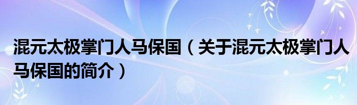 本文關于混元太極掌門人馬保國的簡介就講解完畢,希望對大家有所幫助。
