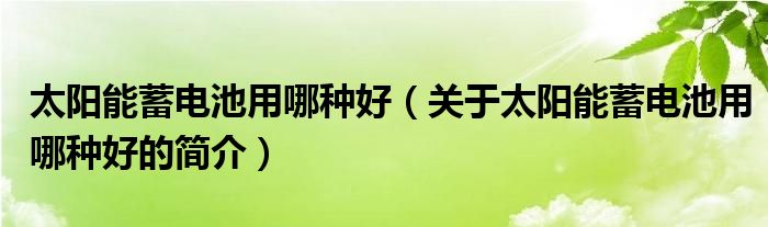 本文關(guān)于太陽(yáng)能蓄電池用哪種好的簡(jiǎn)介就講解完畢,希望對(duì)大家有所幫助。