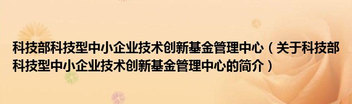 本文關(guān)于科技部科技型中小企業(yè)技術(shù)創(chuàng)新基金管理中心的簡介就講解完畢,希望對大家有所幫助。