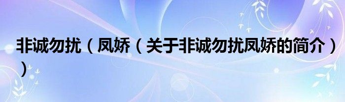 本文關(guān)于非誠勿擾 鳳嬌的簡介就講解完畢,希望對大家有所幫助。