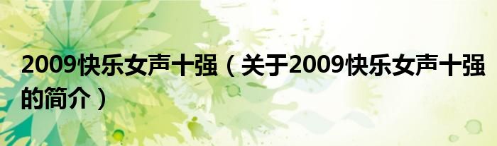 本文關于2009快樂女聲十強的簡介就講解完畢,希望對大家有所幫助。