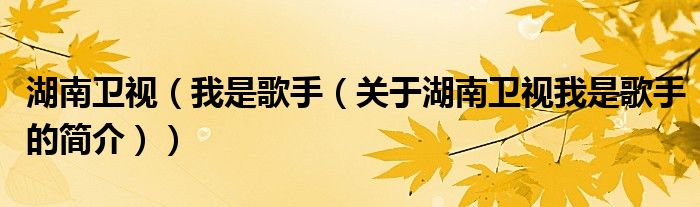 本文關于湖南衛視 我是歌手的簡介就講解完畢,希望對大家有所幫助。