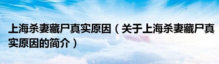 本文關于上海殺妻藏尸真實原因的簡介就講解完畢,希望對大家有所幫助。