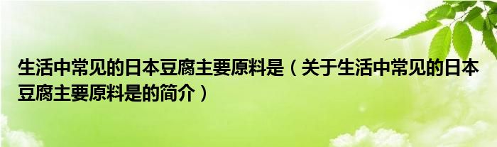 本文關(guān)于生活中常見的日本豆腐主要原料是的簡介就講解完畢,希望對大家有所幫助。