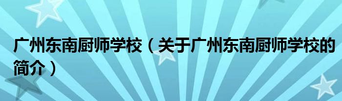 本文關于廣州東南廚師學校的簡介就講解完畢,希望對大家有所幫助。