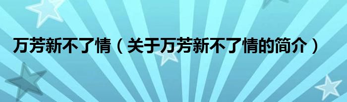 大家好,萬芳新不了情,關于萬芳新不了情的簡介很多人還不知道,現在讓我們一起來看看吧!