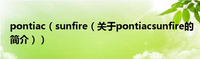 大家好,pontiac sunfire,關于pontiac sunfire的簡介很多人還不知道,現在讓我們一起來看看吧!