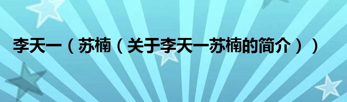 大家好,李天一 蘇楠,關(guān)于李天一 蘇楠的簡介很多人還不知道,現(xiàn)在讓我們一起來看看吧!