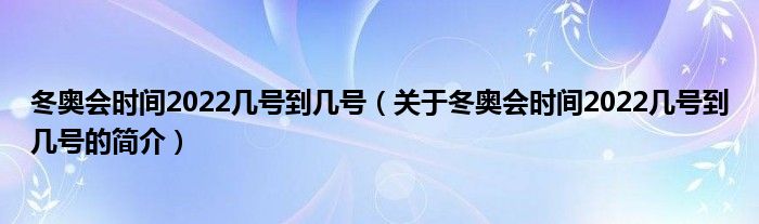 本文關于冬奧會時間2022幾號到幾號的簡介就講解完畢,希望對大家有所幫助。