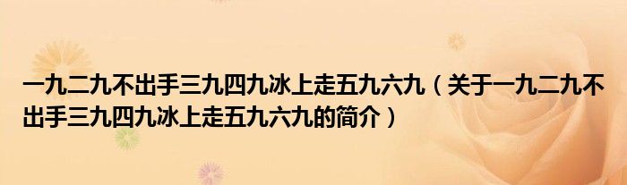 本文關于一九二九不出手三九四九冰上走五九六九的簡介就講解完畢,希望對大家有所幫助。