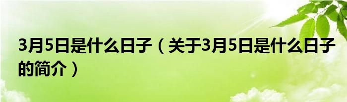 本文關于3月5日是什么日子的簡介就講解完畢,希望對大家有所幫助。
