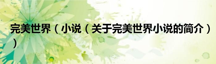 大家好,完美世界 小說,關于完美世界 小說的簡介很多人還不知道,現在讓我們一起來看看吧!