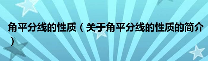 大家好,角平分線的性質,關于角平分線的性質的簡介很多人還不知道,現在讓我們一起來看看吧!