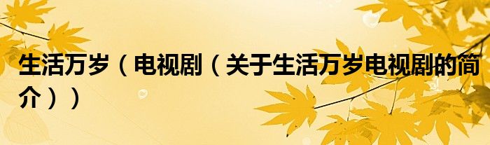 本文關(guān)于生活萬歲 電視劇的簡介就講解完畢,希望對大家有所幫助。