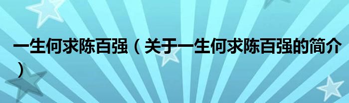 大家好,一生何求陳百強,關于一生何求陳百強的簡介很多人還不知道,現在讓我們一起來看看吧!