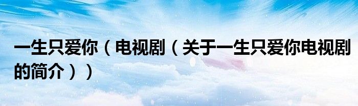 本文關于一生只愛你 電視劇的簡介就講解完畢,希望對大家有所幫助。