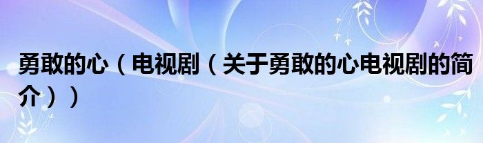 本文關于勇敢的心 電視劇的簡介就講解完畢,希望對大家有所幫助。