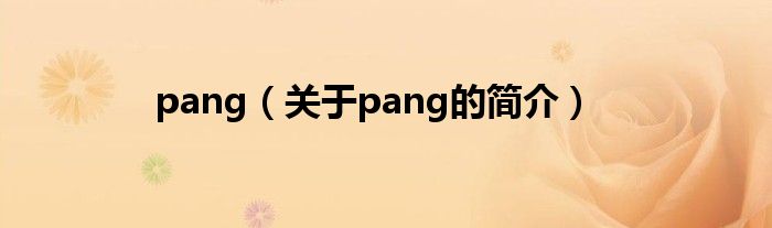 大家好,pang,關于pang的簡介很多人還不知道,現在讓我們一起來看看吧!