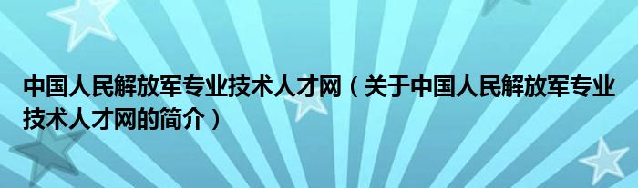 大家好,中國人民解放軍專業(yè)技術(shù)人才網(wǎng),關(guān)于中國人民解放軍專業(yè)技術(shù)人才網(wǎng)的簡介很多人還不知道,現(xiàn)在讓我們一起來看看吧!