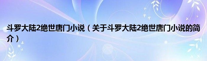 本文關(guān)于斗羅大陸2絕世唐門小說的簡介就講解完畢,希望對大家有所幫助。