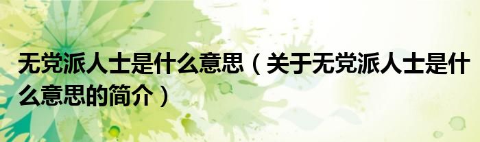 本文關于無黨派人士是什么意思的簡介就講解完畢,希望對大家有所幫助。