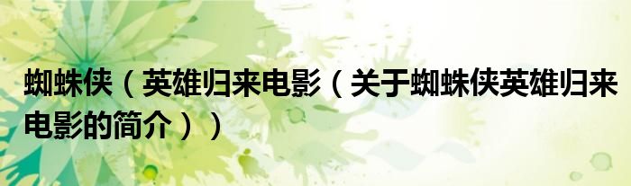 本文關于蜘蛛俠 英雄歸來 電影的簡介就講解完畢,希望對大家有所幫助。