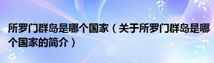 本文關于所羅門群島是哪個國家的簡介就講解完畢,希望對大家有所幫助。