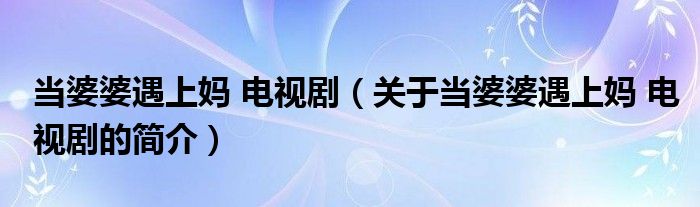 本文關于當婆婆遇上媽 電視劇的簡介就講解完畢,希望對大家有所幫助。