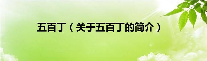 本文關于五百丁的簡介就講解完畢,希望對大家有所幫助。