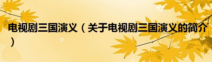 本文關于電視劇三國演義的簡介就講解完畢,希望對大家有所幫助。