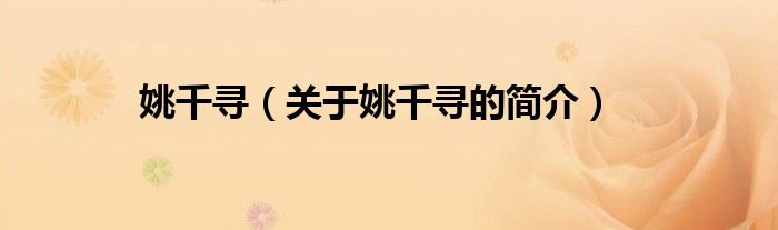 大家好,姚千尋,關于姚千尋的簡介很多人還不知道,現(xiàn)在讓我們一起來看看吧!