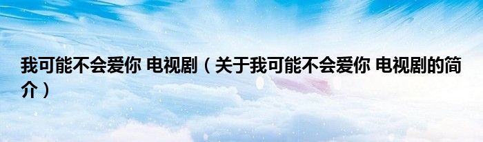 大家好,我可能不會愛你 電視劇,關(guān)于我可能不會愛你 電視劇的簡介很多人還不知道,現(xiàn)在讓我們一起來看看吧!