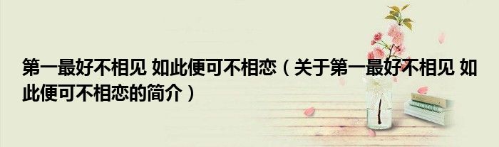 本文關于第一最好不相見 如此便可不相戀的簡介就講解完畢,希望對大家有所幫助。