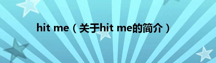 大家好,hit me,關于hit me的簡介很多人還不知道,現在讓我們一起來看看吧!