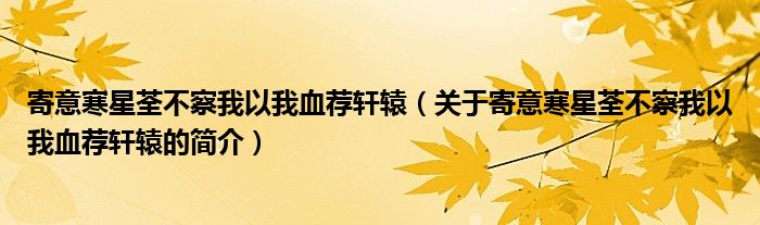 本文關于寄意寒星荃不察我以我血薦軒轅的簡介就講解完畢,希望對大家有所幫助。