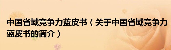 本文關(guān)于中國(guó)省域競(jìng)爭(zhēng)力藍(lán)皮書(shū)的簡(jiǎn)介就講解完畢,希望對(duì)大家有所幫助。