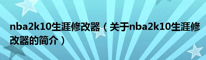 本文關于nba2k10生涯修改器的簡介就講解完畢,希望對大家有所幫助。