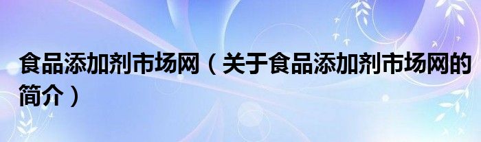 本文關于食品添加劑市場網的簡介就講解完畢,希望對大家有所幫助。