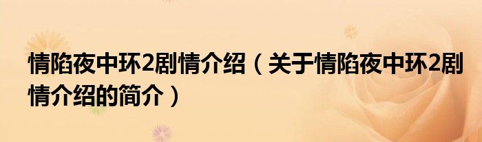 本文關于情陷夜中環(huán)2劇情介紹的簡介就講解完畢,希望對大家有所幫助。