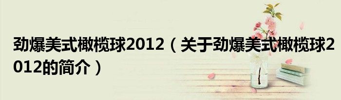 大家好,勁爆美式橄欖球2012,關于勁爆美式橄欖球2012的簡介很多人還不知道,現在讓我們一起來看看吧!