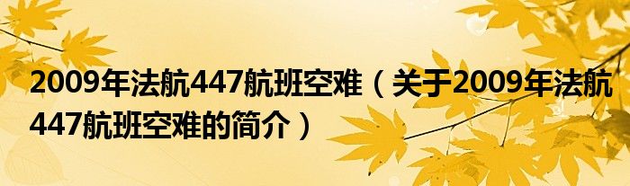 本文關于2009年法航447航班空難的簡介就講解完畢,希望對大家有所幫助。