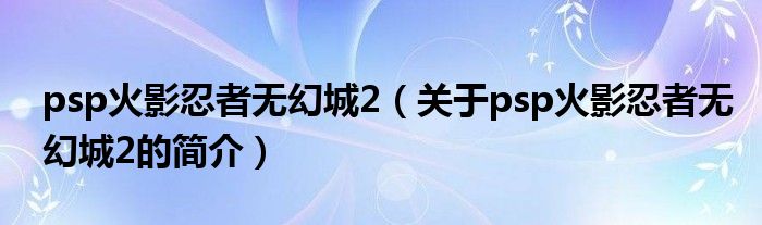 本文關于psp火影忍者無幻城2的簡介就講解完畢,希望對大家有所幫助。