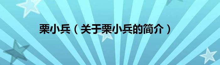 本文關于栗小兵的簡介就講解完畢,希望對大家有所幫助。