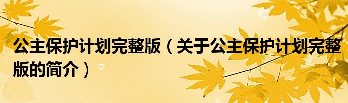 本文關于公主保護計劃完整版的簡介就講解完畢,希望對大家有所幫助。